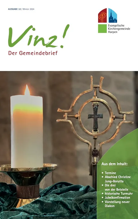 Die Online-Ausgabe des Vinz! enthält aus Datenschutzgründen keine Standesinformationen (Taufen, Beerdigungen, Trauungen). Diese sind nur in der Druckausgabe des Vinz! verfügbar.